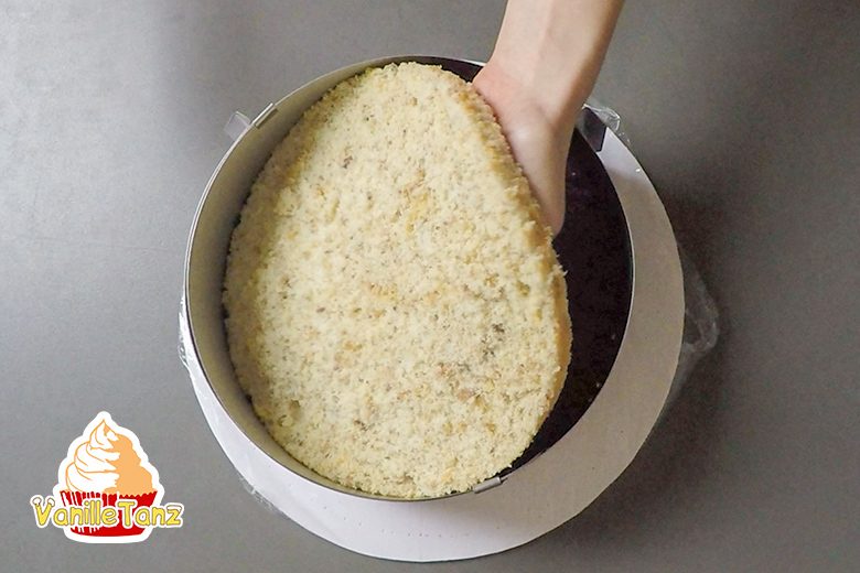 Die Torte im Gefrierfach über Nacht einfrieren lassen.